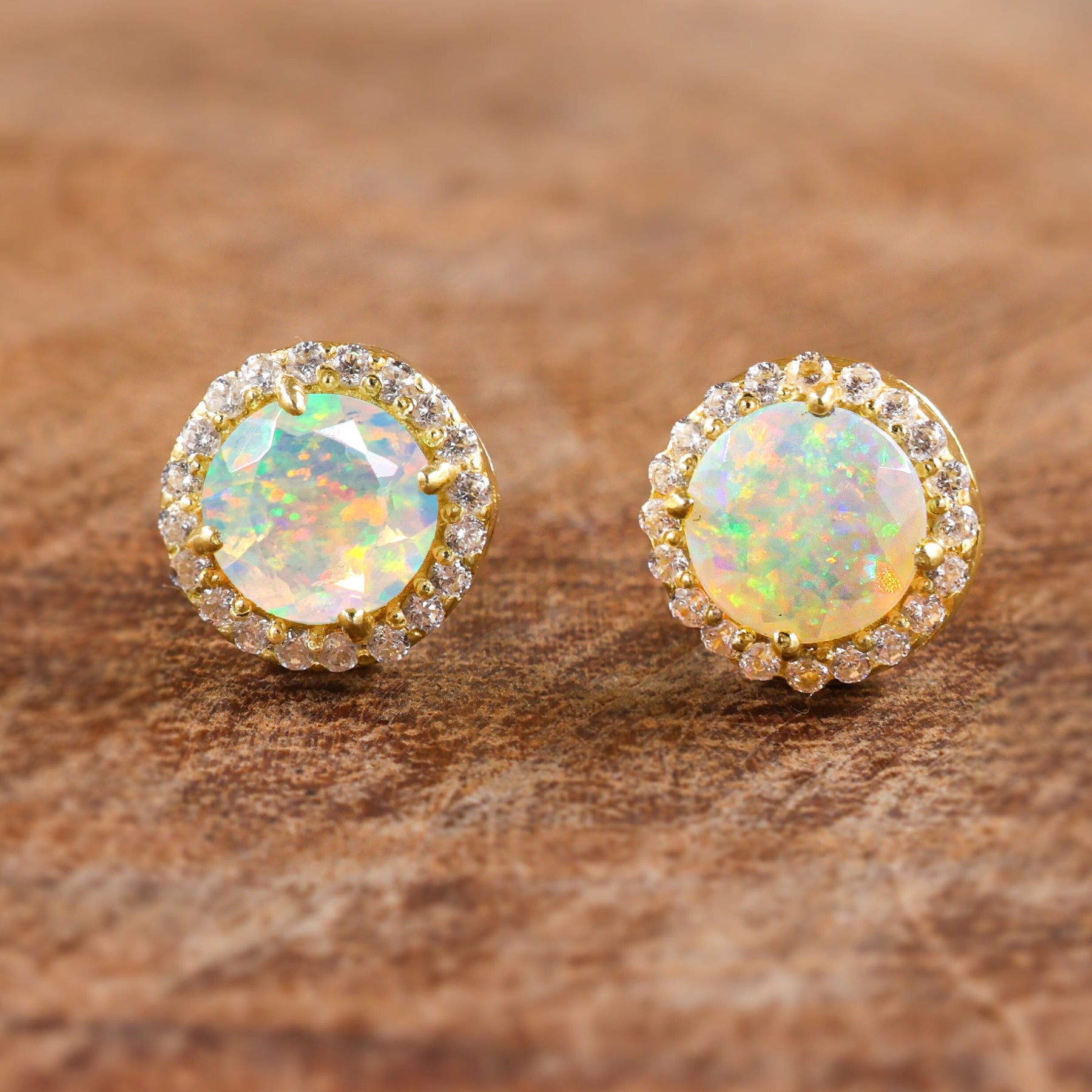 Genuine Opal Round Gemstone Earrings